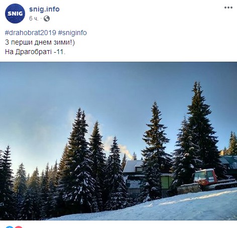 "С первый днем зимы! На Драгобрате -11", - говорится в подписи.