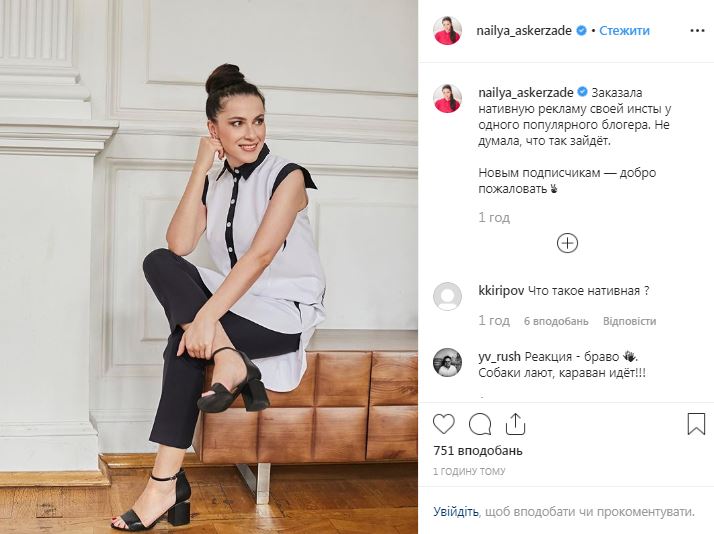 На эту публикацию журналистка отреагировала в Instagram. "Заказала нативную рекламу своей инсты у одного популярного блогера. Не думала, что так зайдёт", - заявила она.