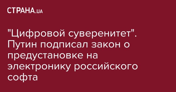 Президент России Владимир Путин подписал закон о предустановке российского программного обеспечения (софта) на телефоны, компьютеры и телевизоры с функцией Smart TV. Соответствующий документ опубликован 2 декабря пресс-службой портала правовой информации.