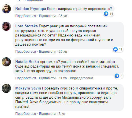Пользователи Facebook в комментариях к другим сообщениям модной журналистки начали активно выражать возмущение ее позицией. Люди, в частности, интересуются, когда ее уволят или когда она переедет в РФ.