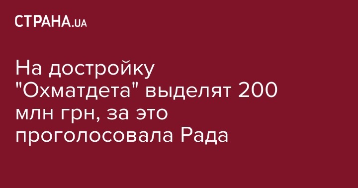 "Парламент поддержал инициативу Президента Владимира Зеленского – на достройку Охматдеа выделено дополнительно 200 млн гривен", - говорится в сообщении.