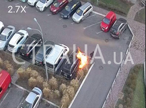 Появились фото момента дерзкого поджога машины в Киеве среди белого дня