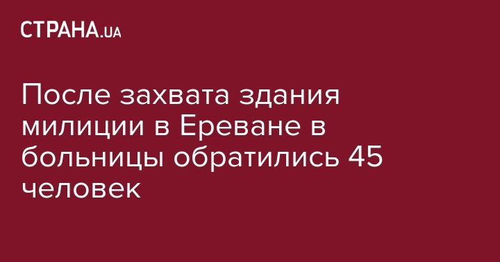 Уже 45 человек обратились в больницы после захвата неизвестными здания патрульно постовой-службы в столице Армении - Ереване, сообщает РИА.