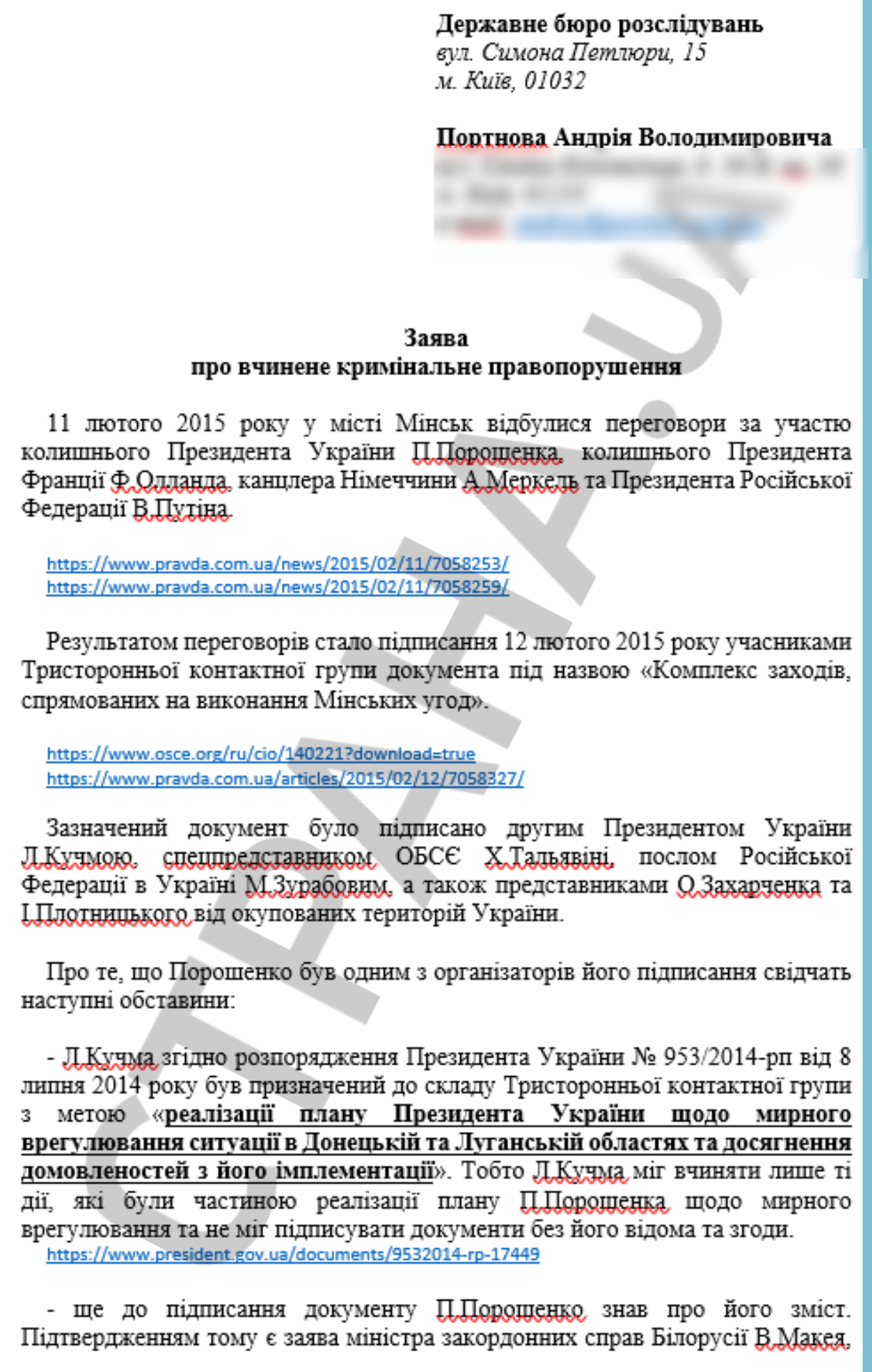 "Страна" публикует заявление Портнова в ГБР о госизмене Порошенко. Документ