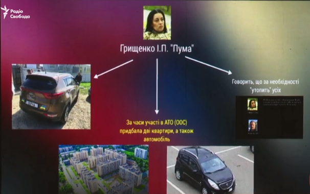 По данным следствия, ветеран АТО Инна Грищенко с позывным "Пума", задержанная ранее по подозрению в покушении на бизнесмена в Ивано-Франковской области, за последние несколько лет стала владелицей двух квартир в Киеве и автомобиля.
