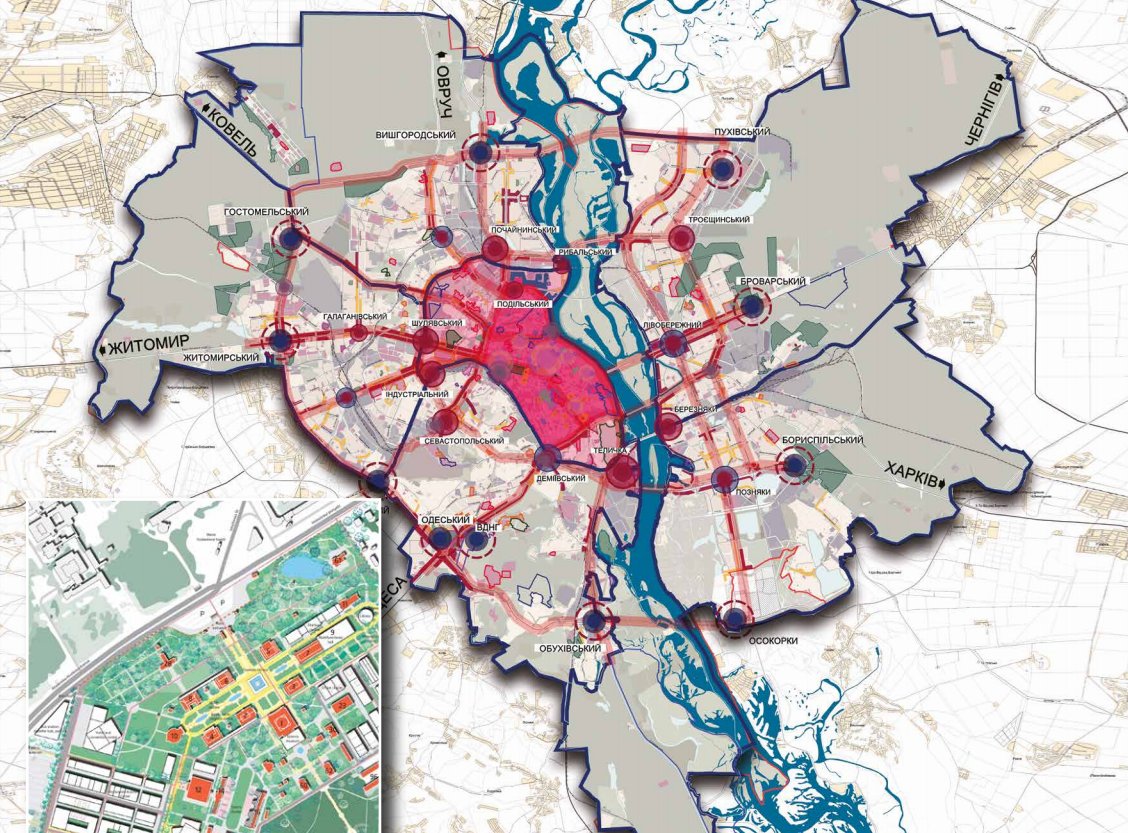 • Строительство трех новых транспортных переходов через Днепр и Большой окружной дороги.