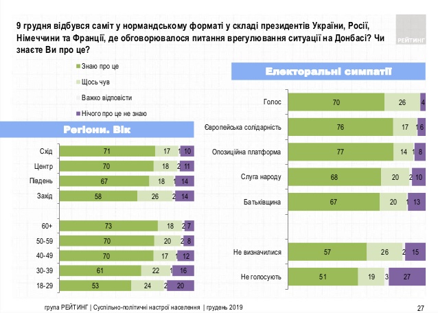 Как сообщается, 20% респондентов что-то слышали о саммите, лишь 12% – не знают ничего. Наиболее информированы о саммите старшие респонденты, избиратели "ЕС" и "Оппозиционной платформы".