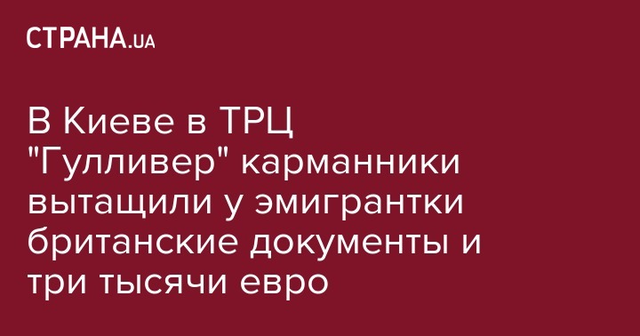 Последний случай крупной карманной кражи в ТРЦ "Гулливер" произошел на выходных у женщины, которая приехала к родственникам из Великобритании. Как мы узнали из собственных источников в Нацполиции, потерпевшая пришла за покупками и не заметила, как у нее из сумочки вытащили портмоне с 3 тысячами евро, видом на жительство в Великобритании и другими личными документами.