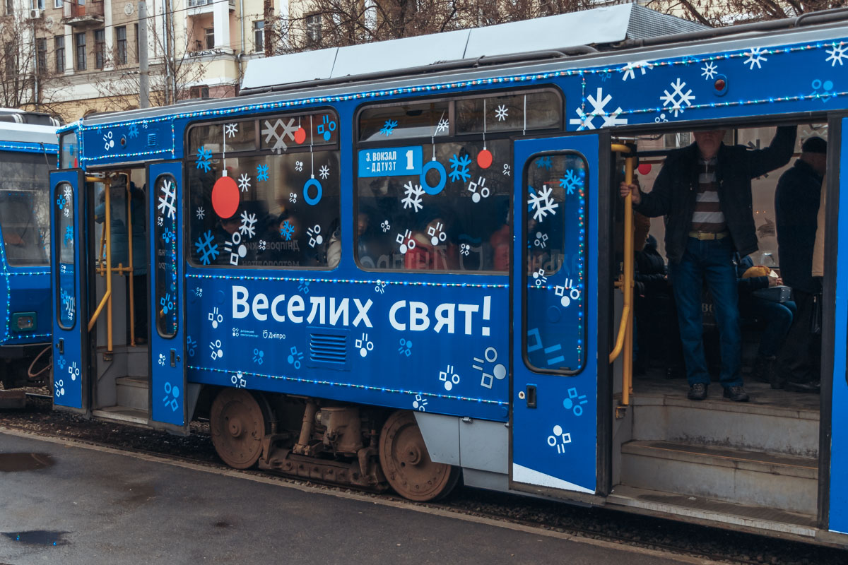 По Днепру начал ходить украшенный новогодними рисунками трамвай. Праздничный общественный транспорт выполняет рейсы по маршруту №1. Об этом сообщает "Информатор"