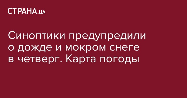 Согласно прогнозам синоптиков, ночью и днем в западных областях Украины ожидается снег и местами мокрый снег. На остальной территории пройдут дожди. Температура ночью от -1 до +6, днем от +1 до +5, на юге страны местами от +4 до +8. Ветер преимущественно северо-западный, 7−12 м/с.