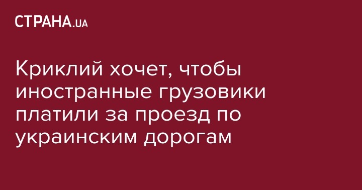 "Есть идея реализовать платный проезд по дорогам Украины для грузовых автомобилей с иностранной регистрацией. Это достаточно распространенная в Европе практика. Мы планируем подготовить соответствующий законопроект в 2020 году", - сообщил Владислав Криклий.