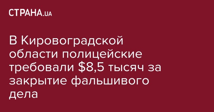 В Кировоградской области задержали группу полицейских, которые после ложного обвинения в растлении несовершеннолетних требовали у местного жителя взятку в размере $8,5 тысяч. Об этом сообщает пресс-служба прокуратуры Кировоградской области.
