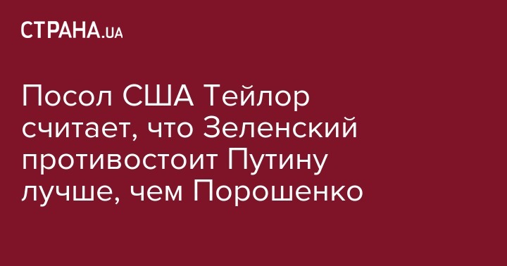 Посол США Тейлор считает, что Зеленский противостоит Путину лучше, чем Порошенко