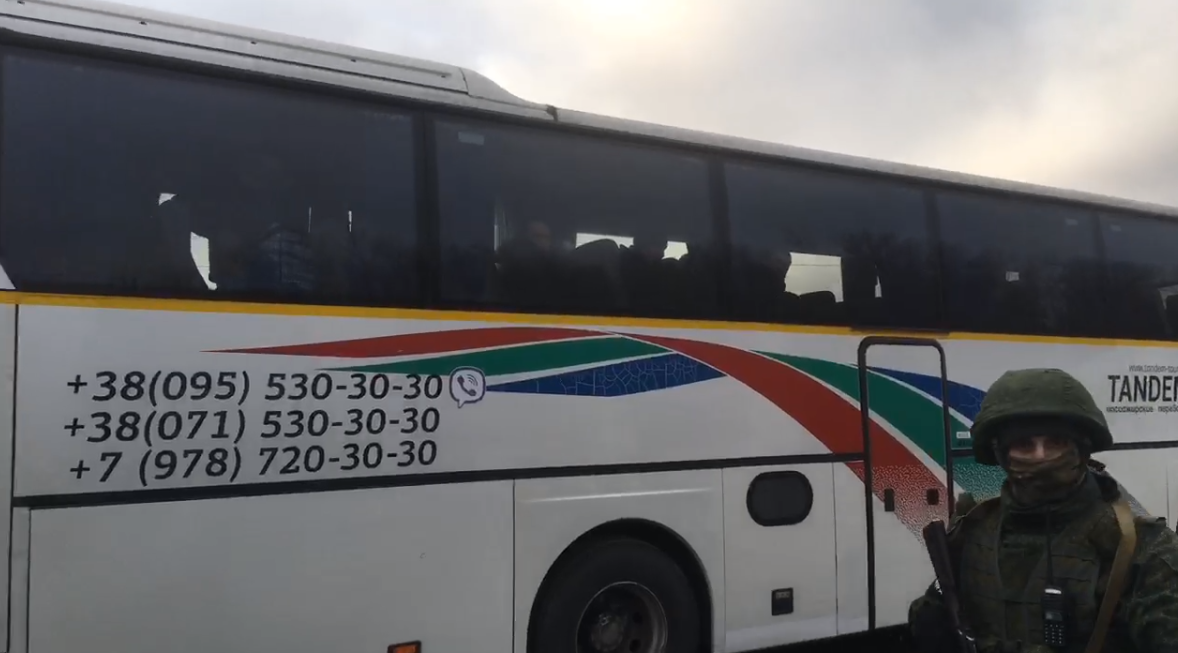 13:47 Автобусы с пленными приехали на территорию "ДНР". Сейчас начнется второй этап обмена.