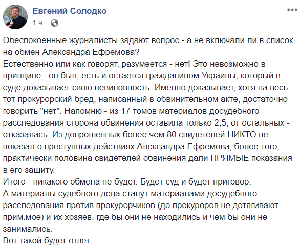 "Обеспокоенные журналисты задают вопрос - а не включали ли в список на обмен Александра Ефремова?