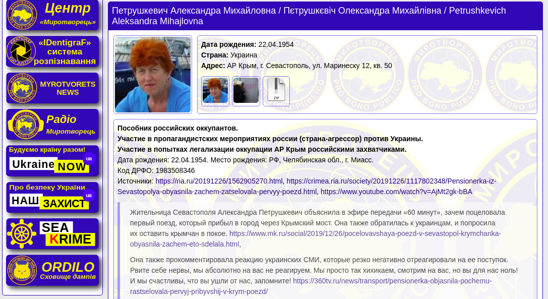 Корреспондента "Фонтанки" Венеру Галееву и всех пассажиров поезда "Таврия", отправившегося 23 декабря из Санкт-Петербурга столицы в Севастополь включили в список сайта. Администраторы прикрепили в качестве доказательства скрины репортажа из первой поездки в Крым на поезде.