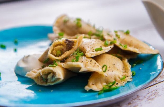 Популярное и вкусное блюдо на рождественском постном столе - вареники с капустой, картошкой, грибами, замороженными вишнями.
