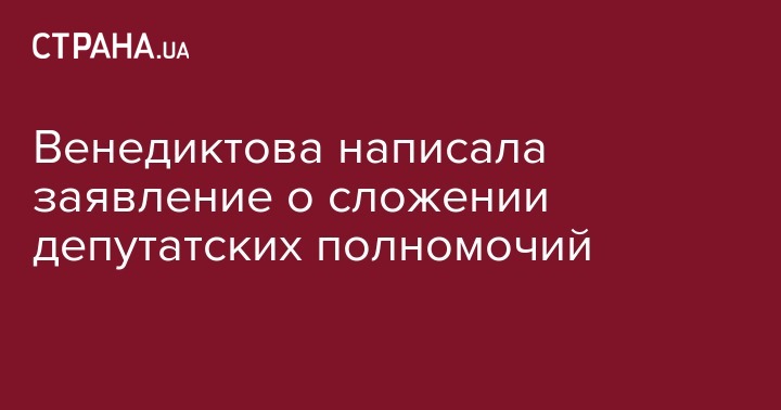 Временно исполняющая обязанности директора Государственного бюро расследований Ирина Венедиктова, которую президент Украины Владимир Зеленский назначил на эту должность вместо уволенного Романа Трубы, подала заявление о сложении полномочий депутата Верховной Рады. Об этом пишут "Українські Новини" со ссылкой на депутата.