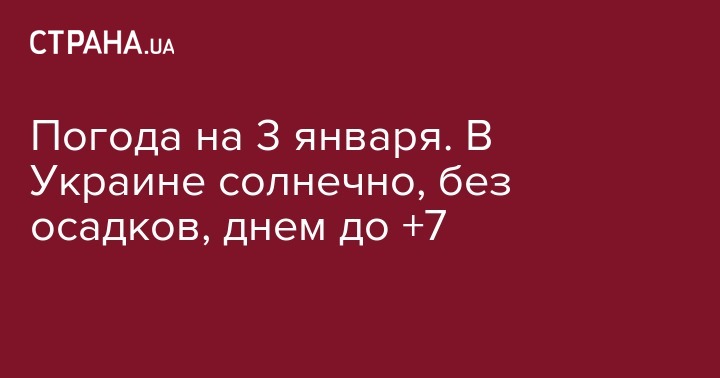 Погода на 3 января. В Украине солнечно, без осадков, днем до +7