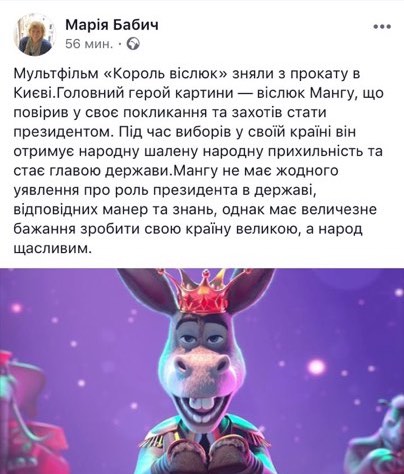В Украине, по мнению пользователей соцсетей, сняли с проката мультфильм "Король-осел" ("Король-віслюк" – укр.).