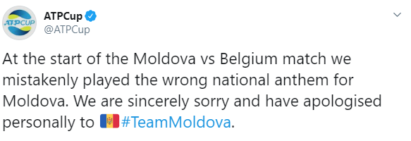 Пресс-служба турнира опубликовала на официальной странице в Twitter заявление, в котором извинилась за инцидент перед молдавской командой. "Перед началом игры Молдовы и Бельгии мы по ошибке поставили неправильный национальный гимн. Мы искренне сожалеем о случившемся и принесли персональные извинения молдавской команде", - говорится в заявлении.