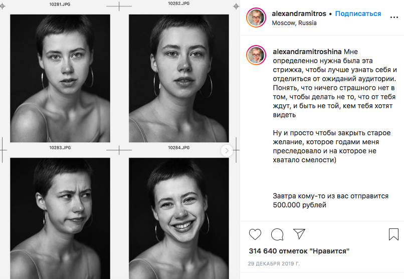 Для понимания тематики Instagram Александры приведем несколько постов: о стрижке, стандартах красоты, снимки с отдыха в купальнике.