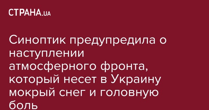 В четверг, 9 января, в Украину пожалует атмосферный фронт, который принесет с собой мокрый снег с дождем, а метеозависимым людям - головную боль.