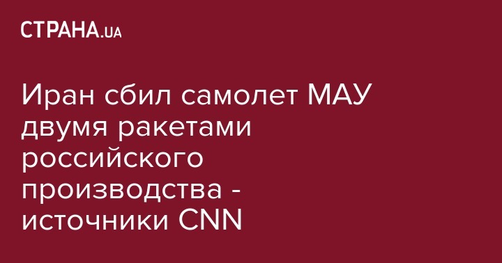 Американский чиновник, связанный с разведкой и пожелавший остаться неназванным, сообщил, что Иран сбил самолет "Международных авиалиний Украины" двумя ракетами российского производства. Об этом сообщает американский телеканал CNN.