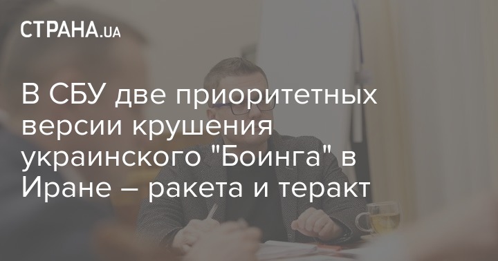 Приоритетными версиями авиакатастрофы самолета МАУ в Иране для СБУ являются совершение террористического акта и попадание ракеты зенитно-ракетного комплекса. Об этом во время заседания специальной рабочей группы спецслужбы в пятницу заявил руководитель СБУ Иван Баканов.