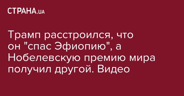 Трамп расстроился, что он "спас Эфиопию", а Нобелевскую премию мира получил другой. Видео