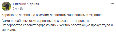 Сами по себе высокие зарплаты не спасают от воровства. От воровства спасают эффективно и честно работающие прокуратура и милиция", - написал бизнесмен Евгений Черняк.