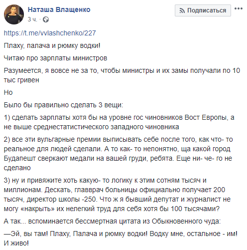 Ну и главное: Луценко когда-то тоже назначал своим замам большие оклады. И чем Гончарук лучше Луценко?