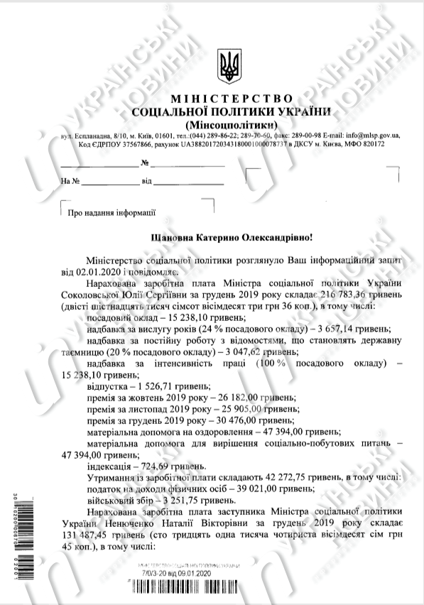 Сами же должностные оклады министров довольно скромные - в районе 16 тысяч у Соколовской и Малюськи, и 3000 - у Пристайко. Остальное - это надбавки, а также указанные выше супер-премии.