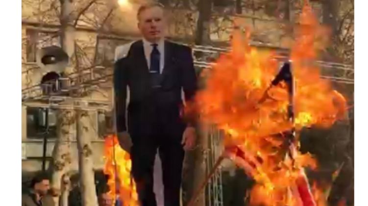 Изображение посла, выполненное в полный рост сожгли в Тегеране, фото: twitter.com/aliarouzi