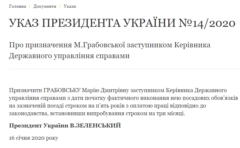 Сегодня, 16 января, президент Украины Владимир Зеленский издал два указа о назначении заместителей руководителя Государственного управления делами Украины. Указы были опубликованы на сайте президента.