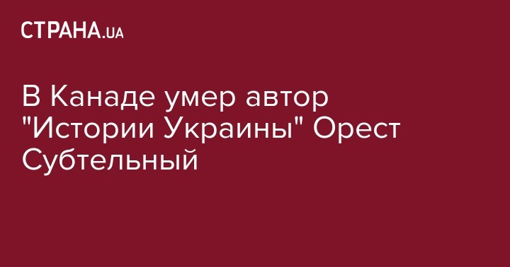 В городе Торонто 24 июля на 76 году жизни умер известный украинский историк Орест Субтельный. Об том сообщает "Громадское радио".