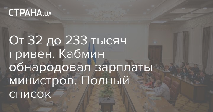 От 32 до 233 тысяч гривен. Кабмин обнародовал зарплаты министров. Полный список