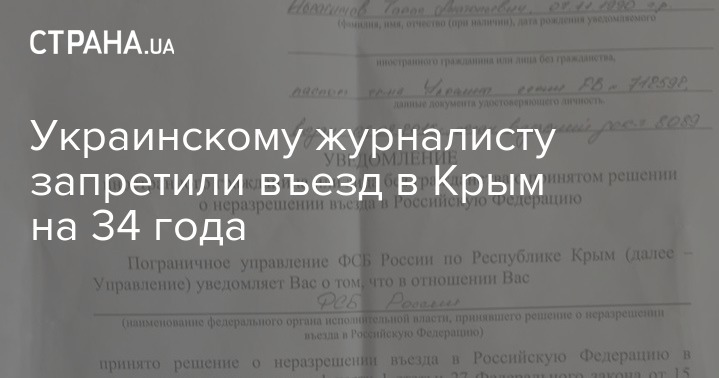 Украинскому журналисту запретили въезд в Крым на 34 года