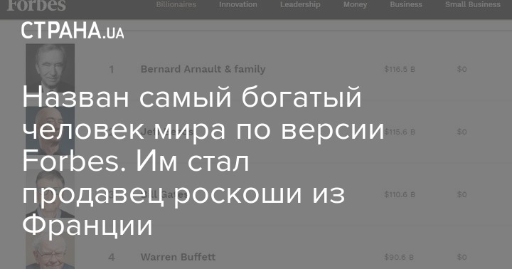 Французский бизнесмен, президент Louis Vuitton Moеt Hennessy (LVMH) Бернар Арно и члены его семьи заняли первую строчку рейтинга багатейших людей мира по версии журнала Forbes.