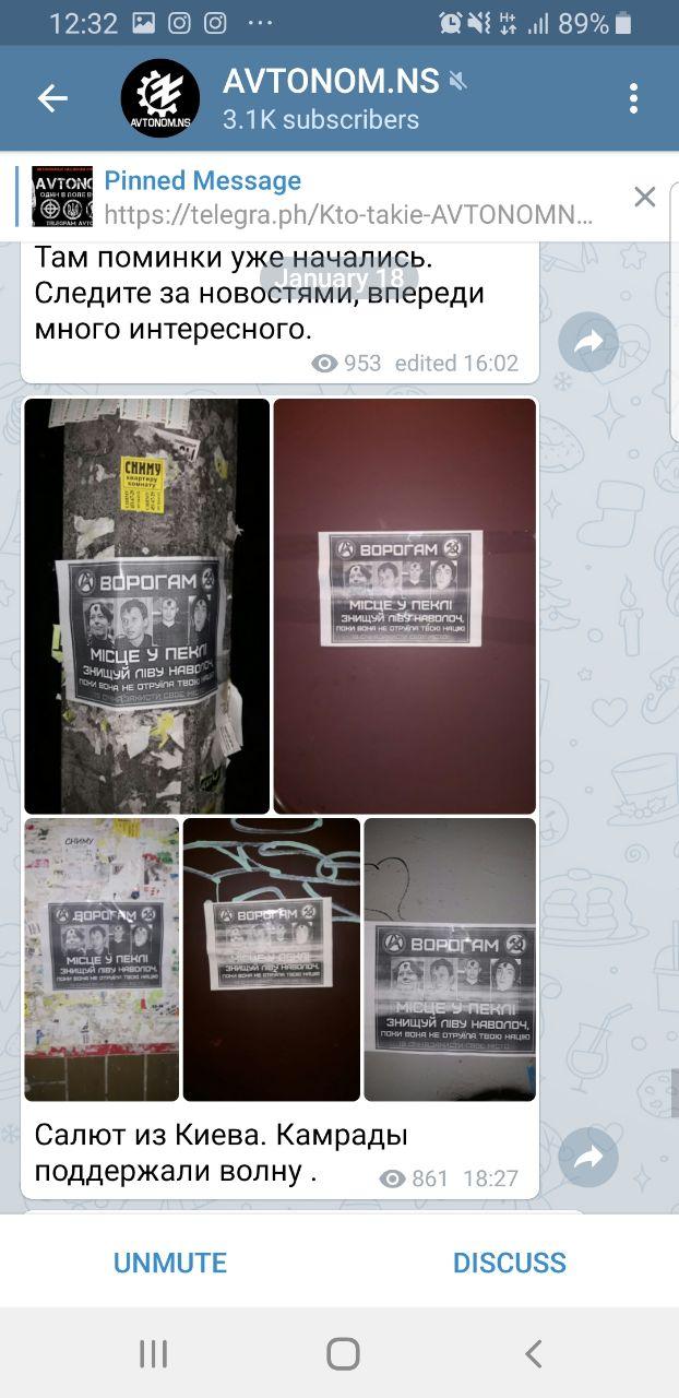 Накануне в телеграмм-канале националистов были опубликованы сообщения с призывом ликвидировать участников антифашистской акции. Утром на майдане независимости появился флаг с надписью "Убить антифашиста".