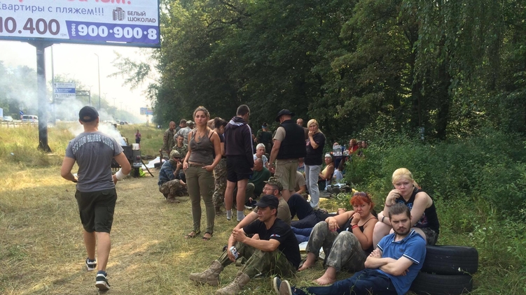 Митингующие расположились прямо у въезда в Киев. И пока отдыхают. Такой себе пикник на обочине. Судя по запасам еды, "пикниковать" они намерены долго.