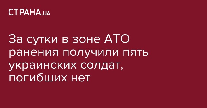 За минувшие сутки в зоне АТО на Донбассе ранения различной степени тяжести получили пять украинских военных, погибших нет. Такие данные озвучил во вторник, 26 июля, спикер администрации президента по вопросам АТО Андрей Лысенко, передает 112 Украина.