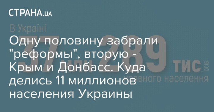 Таким образом, начиная с прошлой переписи Украина лишилась в целом 11 миллионов человек. А если исключить из уравнения Крым и Донбасс, где произошли форс-мажорные события - то естественная убыль населения за эти годы - тоже пять с половиной миллионов.