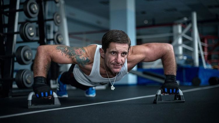 Шкиряк сделал себе на спине тату Тризуба и надписи "Слава Украине" на английском. Фото