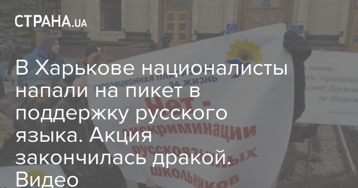 В Харькове у здания ОГА националисты сорвали митинг в защиту русского языка и русскоязычных школ, организованный председателем Харьковской городской организации "Оппозиционная платформа - За жизнь" Андреем Лесиком.