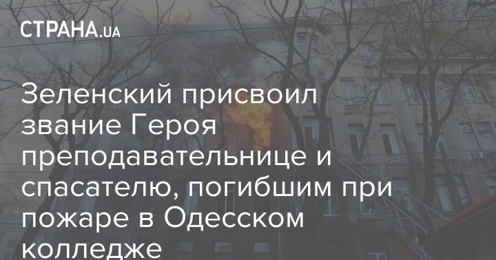 Зеленский присвоил звание Героя преподавательнице и спасателю, погибшим при пожаре в Одесском колледже