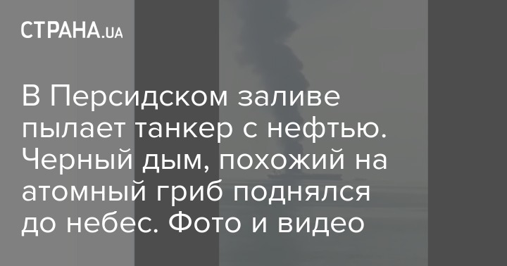В Персидском заливе пылает танкер с нефтью. Черный дым, похожий на атомный гриб поднялся до небес. Фото и видео