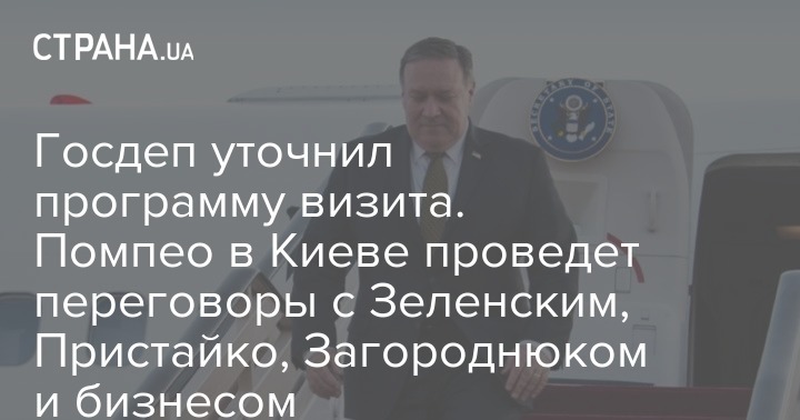 В ходе двухдневного визита в Киев, Майк Помпео выразит поддержку США суверенитету Украины и обсудит с президентом Владимиром Зеленским вопросы европейской безопасности, идет речь в заявлении Госдепа.