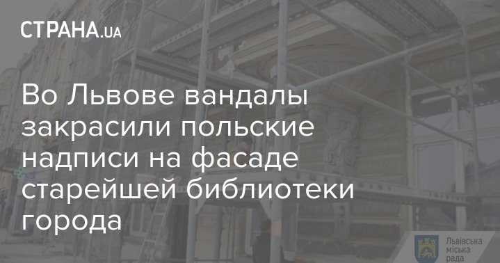 Во Львове вандалы закрасили польские надписи на фасаде старейшей библиотеки города