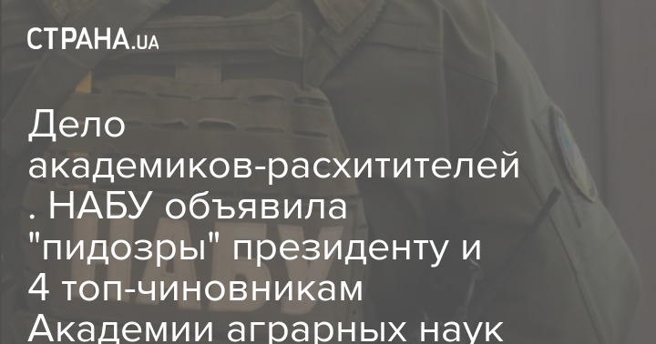 Детективы Национального антикоррупционного бюро Украины (НАБУ) сообщили президенту Национальной академии аграрных наук Украины (НААН) и еще четырем топ-чиновникам НААН о подозрении в причастности к незаконному отчуждению 15 га особо ценных земель НААН.